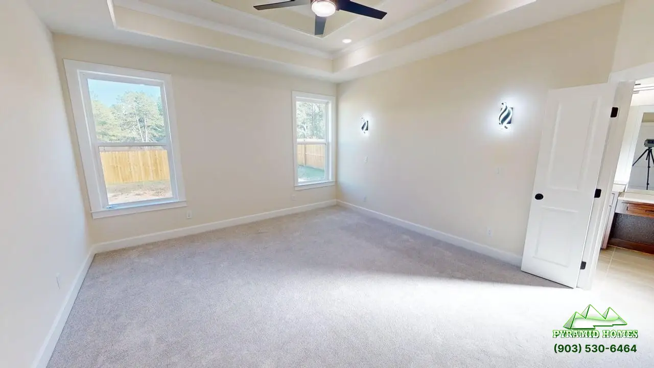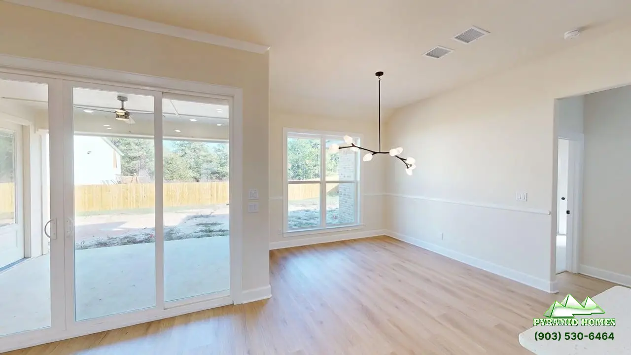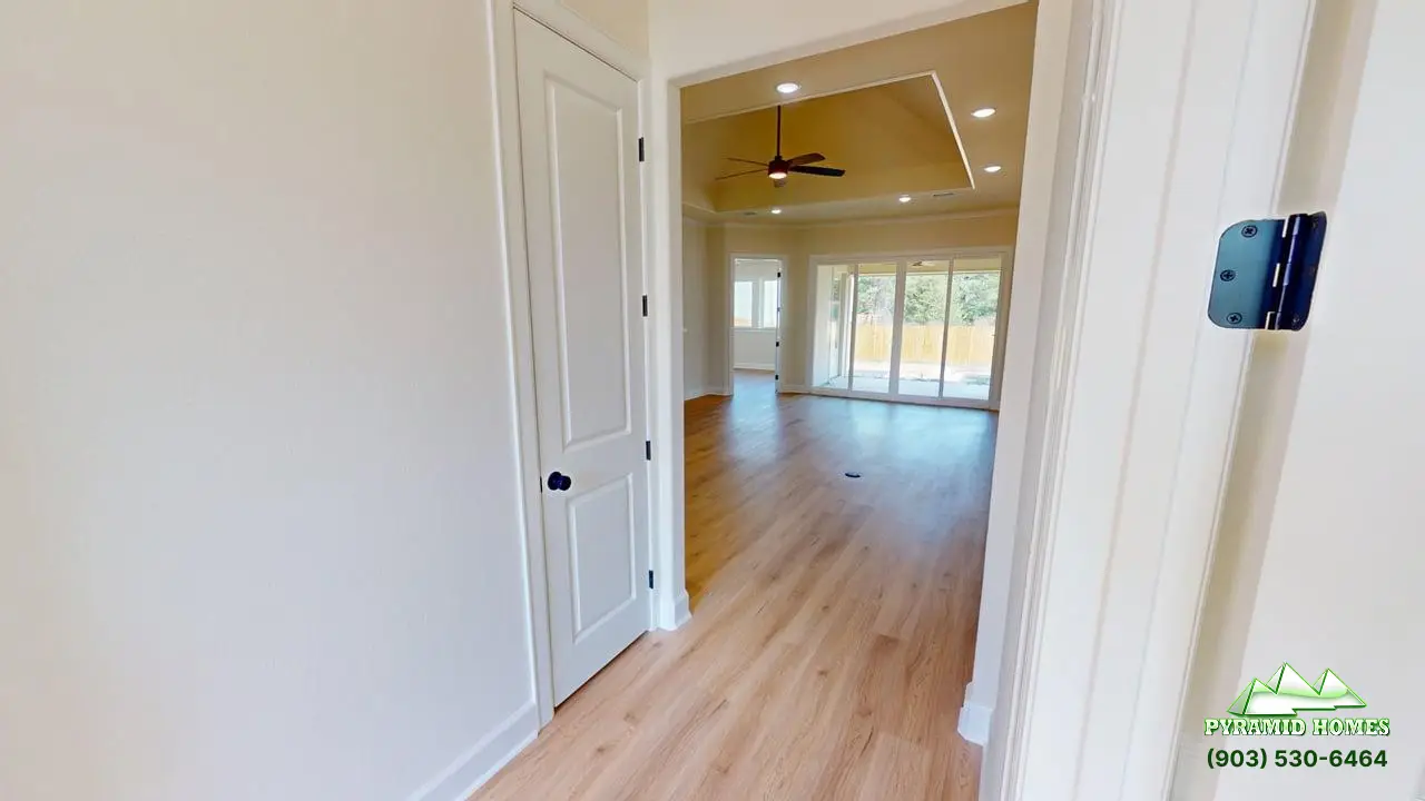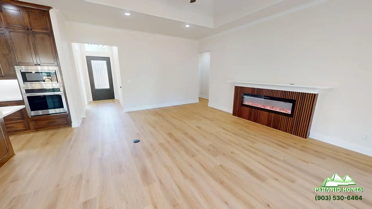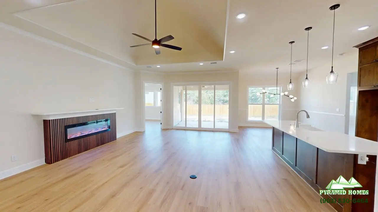 The 1,985 ft² floor plan at Khalifa Court in Longview, TX, offers modern living with energy efficiency, smart technology, and luxury finishes. This 4-bedroom, 2.5-bath home features an open-concept layout, a downstairs primary suite, and a gourmet kitchen with ceiling-height cabinets, a 36-inch gas cooktop, and a walk-in pantry. Energy-saving elements include spray foam insulation and a tankless water heater for lower utility costs. Smart home integration adds convenience with WiFi-enabled sprinklers, a connected garage door, and a remote water valve system. Elegant touches like an iron front door, electric fireplace, and spa-style bathroom enhance comfort. Priced at $389,900, the Khalifa Court home delivers exceptional value, style, and future-ready features for today’s families.