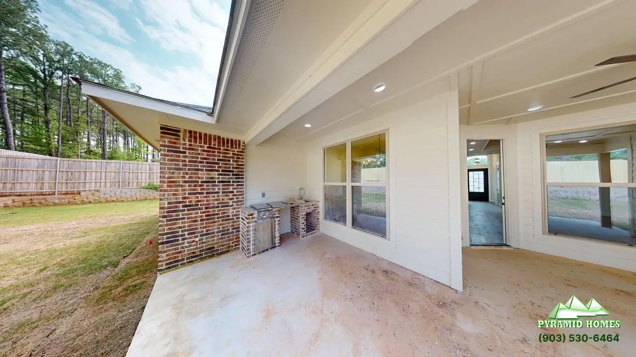 The 2664-Aft² Floor Plan, Crooked Trail, in Tyler, Texas, combines luxury, functionality, and sustainability in one beautifully crafted home. This 4-bedroom, 2.5-bath layout features open-concept living, a game room, and a study—perfect for work and play. The gourmet kitchen boasts a 48″ professional gas cooktop, wall oven, microwave, walk-in super pantry, and custom ceiling-height cabinetry. The primary suite offers his and hers closets, a freestanding tub, and a rain head shower for spa-like relaxation. Built for energy efficiency, it includes spray foam insulation, a tankless water heater, WiFi sprinkler system, and a 220V EV-ready garage outlet. Enjoy outdoor living with a covered patio, built-in kitchen, and fenced backyard. Smart home automation, premium finishes, and sustainable features make this floor plan ideal for modern families. Schedule a tour today and experience the perfect balance of comfort, technology, and style at Crooked Trail.